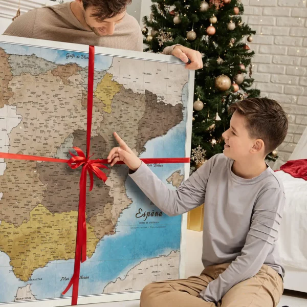 Unsere handgefertigte Karte von Spanien besteht aus hochwertigem Baumwollgewebe, einem Holzrahmen und einer Pinnwand.