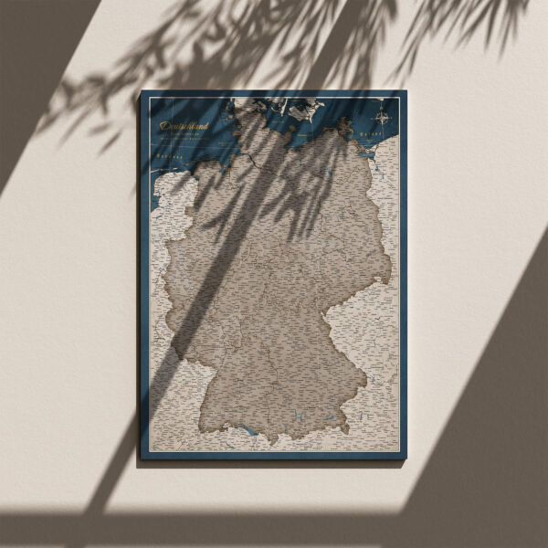 Zeitlos elegante Deutschlandkarte als Pinnwand in Beige und Blau