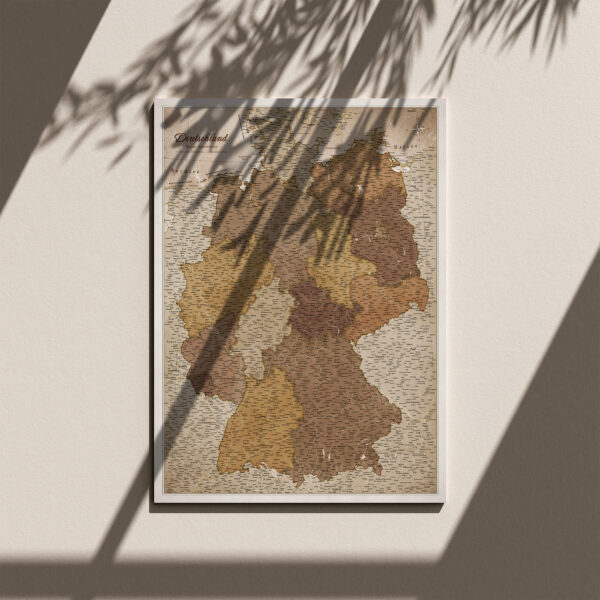 Pinnwand Deutschlandkarte Leinwandbild Brauntöne