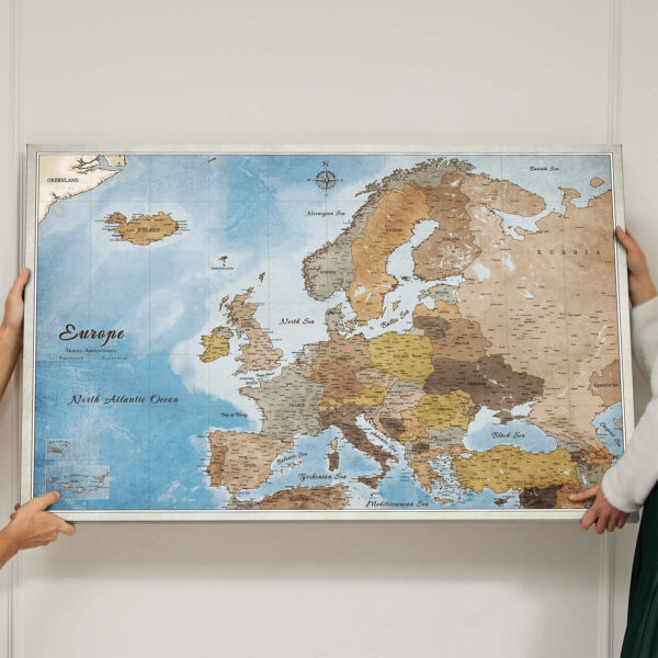 Verleihen Sie Ihrem Wohnraum das gewisse Etwas mit der Europakarte als Pinnwand in den eleganten Farben Braun und Blau! Kontaktieren Sie uns, damit wir Ihnen alle Fragen beantworten können.