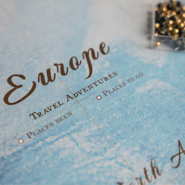 Wie oben erwähnt, umfasst unser Angebot auch dekorative Stecknadeln in vielen Farben. Auf Ihrer Europakarte können Sie mit den Pins alle bisherigen Reisen markieren. Auch kleine Notizen oder Fotos lassen sich mit den praktischen Stecknadeln befestigen. Darüber hinaus können Sie mithilfe der Pins auch Ihre zukünftigen Reiseziele detailreich planen.