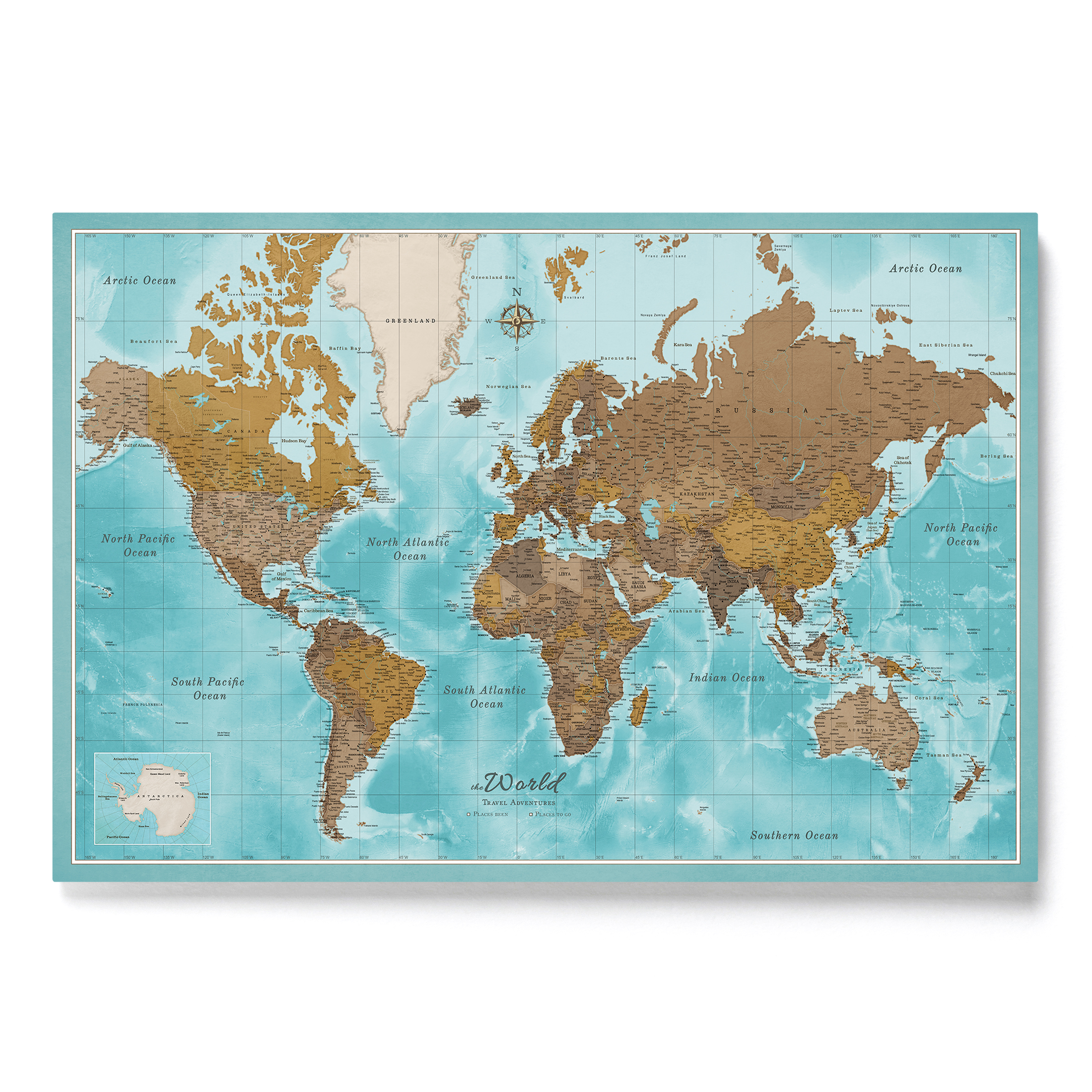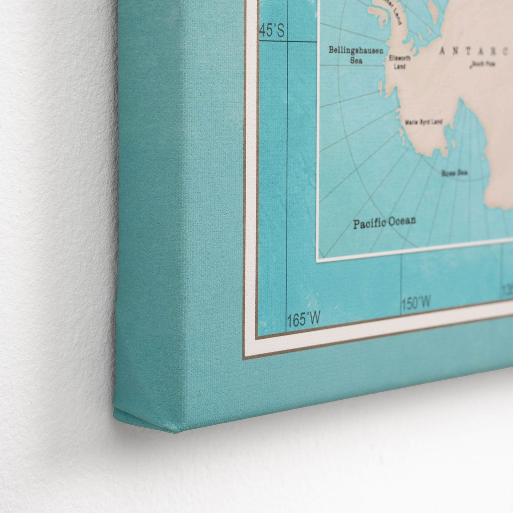 Pinnwand Weltkarte Leinwandbild Blue Lagoon
