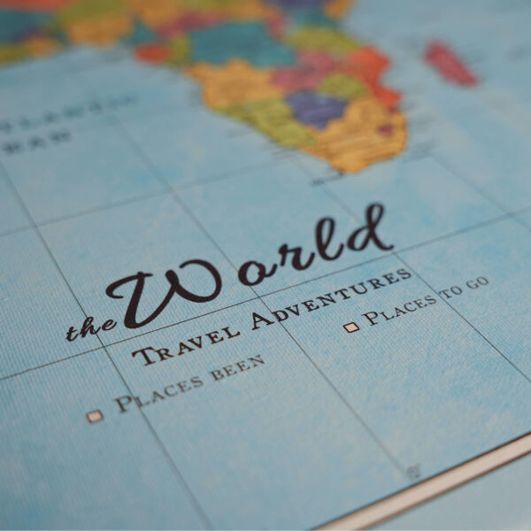 Unsere Karte ermöglicht, besuchte Orte zu markieren, damit Ihre Reiseerinnerungen nie verblassen. Eine sehr hohe Druckauflösung sorgt für eine detaillierte Darstellung von Ländern, Hauptstädten, Städten, Ozeanen und Meeren. Da sich unsere Karten durch eine solide Konstruktion auszeichnen, sind sie sehr langlebig.
