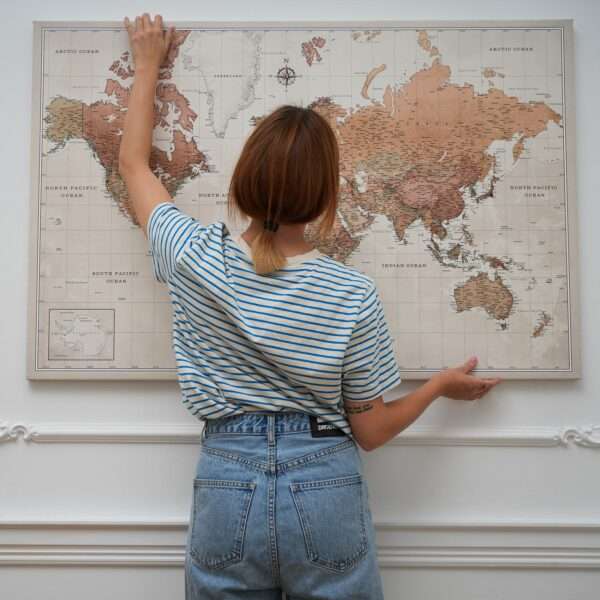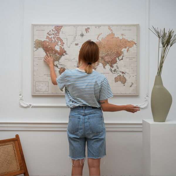 Unsere Karte ermöglicht, besuchte Orte zu markieren, damit Ihre Reiseerinnerungen nie verblassen. Eine sehr hohe Druckauflösung sorgt für eine detaillierte Darstellung von Ländern, Hauptstädten, Städten, Ozeanen und Meeren. Da sich unsere Karten durch eine solide Konstruktion auszeichnen, sind sie sehr langlebig.