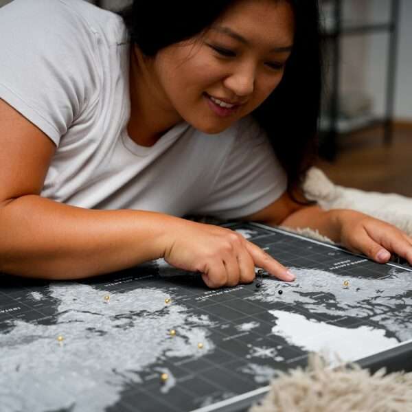 Unsere Karte ermöglicht, besuchte Orte zu markieren, damit Ihre Reiseerinnerungen nie verblassen. Eine sehr hohe Druckauflösung sorgt für eine detaillierte Darstellung von Ländern, Hauptstädten, Städten, Ozeanen und Meeren. Da sich unsere Karten durch eine solide Konstruktion auszeichnen, sind sie sehr langlebig.
