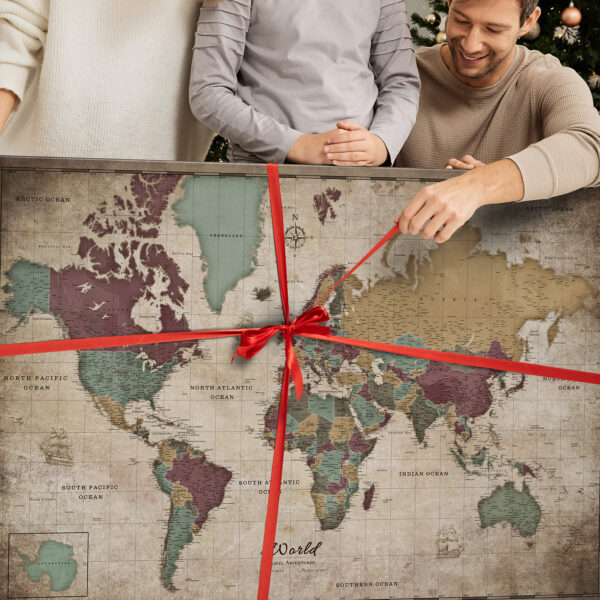 Unsere Karte ermöglicht, besuchte Orte zu markieren, damit Ihre Reiseerinnerungen nie verblassen. Eine sehr hohe Druckauflösung sorgt für eine detaillierte Darstellung von Ländern, Hauptstädten, Städten, Ozeanen und Meeren. Da sich unsere Karten durch eine solide Konstruktion auszeichnen, sind sie sehr langlebig.
